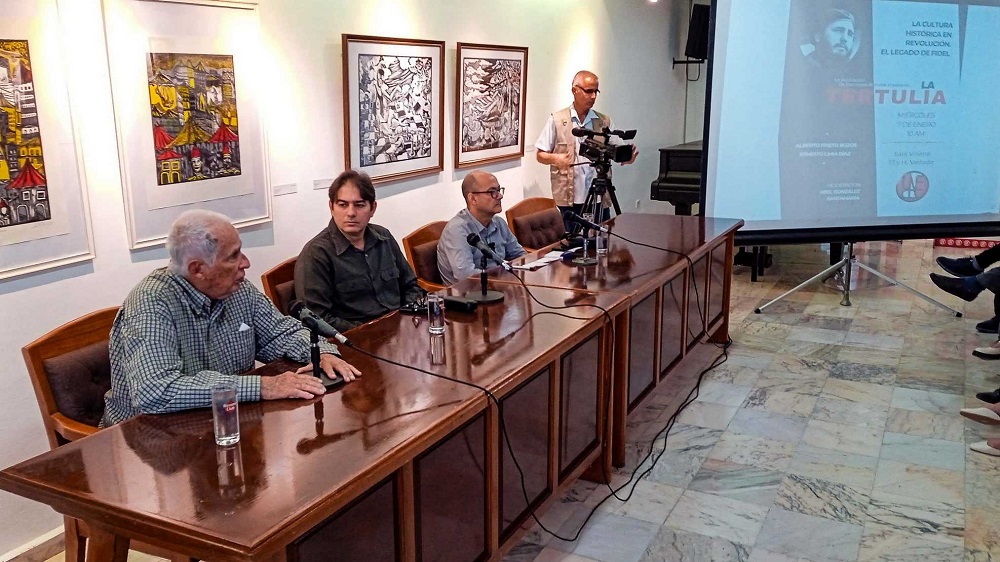 La cultura cubana, la imbricación en ella de diferentes próceres por la independencia y el rol en ese proceso del líder histórico de la Revolución cubana, Fidel Castro, fueron algunos de los aspectos abordados en el primer encuentro de La Tertulia en 2026, un espacio de debate y reflexión auspiciado por la Uneac. Celebrada en la Sala Villena de esa institución, la cita tuvo como tema central “La cultura histórica en Revolución. El legado de Fidel”, a propósito de las celebraciones por el centenario del natalicio de líder cubano, y contó con participación de los historiadores Alberto Prieto Rozos y Ernesto Limia.