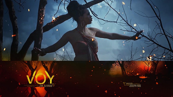 También consiguió ocho nominaciones el muy imaginativo Voy, de Eme Alfonso: Mejor video del año, mejor producción (Marianela Donate y Pedro Romero), edición (Alián Hernández), dirección de arte y dirección (ambas a cargo de Joseph Ros), efectos visuales (Daniel Alemán y Amed Bueno), making of y fotografía (Alexander González, también nominado por otros tres videos: Universo, Culpable de nada y Sobre mi pecho, Matanzas). La voz de Eme Alfonso y la letra de la canción ratifican la voluntad de continuar caminando erguida a pesar del cielo y con la bendición de la tierra. Las alusiones a los cuatro elementos se justifican de mil maneras, en el lodo que cubre los cuerpos, en la atmósfera saturada de destellos y candelas; pero el índice que enriquece el texto y la música de la canción aparece cuando los tres protagonistas, con vestuarios de inspiración africana, atraviesan una pradera escoltados por cebras y elefantes. Colmado de metáforas visuales muy hermosas, Voy pierde fuerza expresiva y coherencia al final, cuando la cantante y sus dos acompañantes, o guardaespaldas, son vistos cual androides cuyo esqueleto es de plástico y circuitos integrados. Visualmente resulta impactante la referencia a filmes como Blade Runner o Alien, pero la conversión en robots anula la poderosa simbología de los dos tercios iniciales, y resulta, al menos para este redactor, incomprensible.
