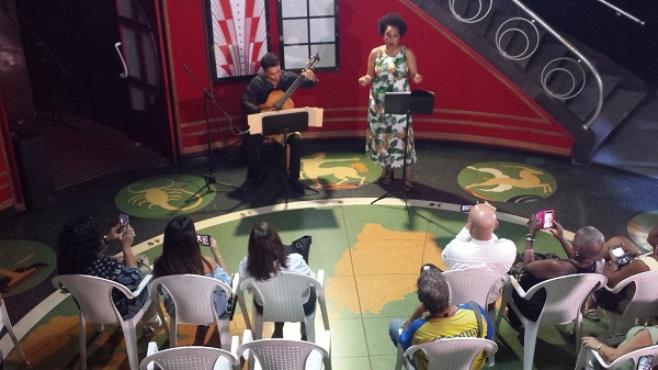 Luego de presenciar la muestra fotográfica, el teatro América también fue sede del concierto La guitarra en Italia: retrato de una época, que ofrecieron la soprano Olga Ileana Jiménez y el guitarrista Rolando Macías Marín.
