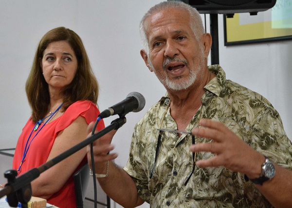 Habla Gonzalo Moure a los presentes en la sede de la Unión de Escritores y Artistas de Cuba (Uneac) de la ciudad capital de Villa Clara. El tema de hoy ha girado en torno a la censura en las letras infantiles y Gonzalo, el español que lleva bibliotecas a los niños sarahuíes, proyecta un argumento que engloba ese particular magistralmente: “la censura es un reconocimiento de la potencia de la literatura”.