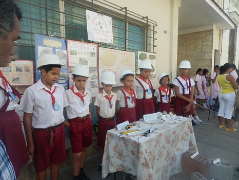 El caso es que a lo largo de una semana, desde las 8 a las 10 de la noche cada día, monitores de más de una veintena de Círculos de Interés nos mantuvimos frente a nuestras áreas expositivas, explicando las más disímiles cuestiones a quienes visitaban la exposición; un público constituido por nuestros propios familiares, amigos del barrio, vecinos o simples curiosos que pasaban, veían el lugar iluminado en la noche, el entra y sale de personas, y se sumaban a la ocasión. A tal punto llegó el rigor de los implicados que incluso hubo una demostración de técnicas de escalamiento (el empleo de arneses, cinturones de seguridad, botas de escalamiento, diversos tipos de nudo corredizo, etc.); terminadas las explicaciones, la demostración concluyó cuando el profesor que se encargaba de ese círculo de interés y dos de mis compañeros de aula “escalaron” al techo del teatro de la escuela, a unos diez metros de altura.