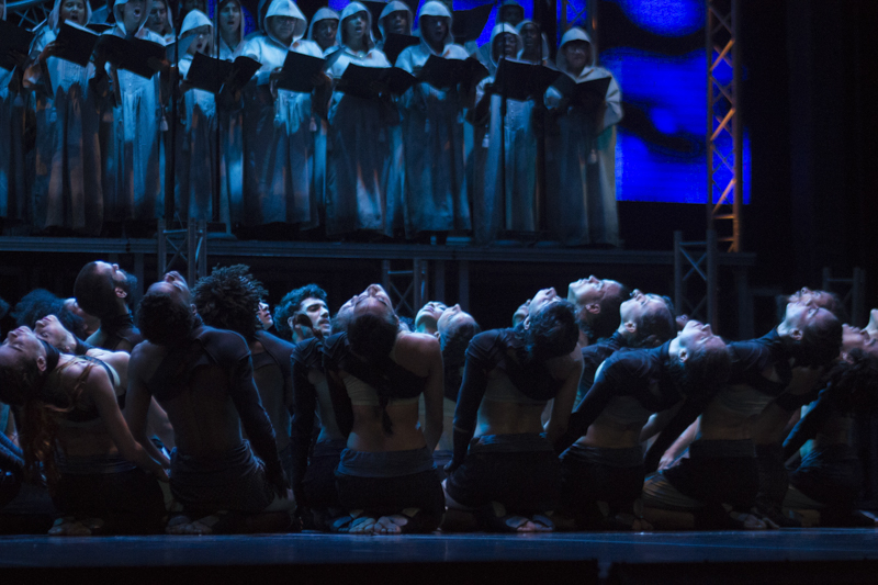 De eso se trata, de construir horizontes profundamente humanos, tal como hicieron los creadores de Carmina Burana, montaje que aúna diferentes enfoques: danza, música sinfónica, cantos corales, voces humanas, audiovisuales, diseños escénicos. Aquí se juntaron esfuerzos creativos de diversas agrupaciones para subir a escena un espectáculo de gran formato, suerte de freno a la intolerancia y celebración de vida, a quienes se les otorgó un Villanueva Especial que recibieron George Céspedes, coreógrafo, y Miguel Iglesias, director general de Danza Contemporánea de Cuba.