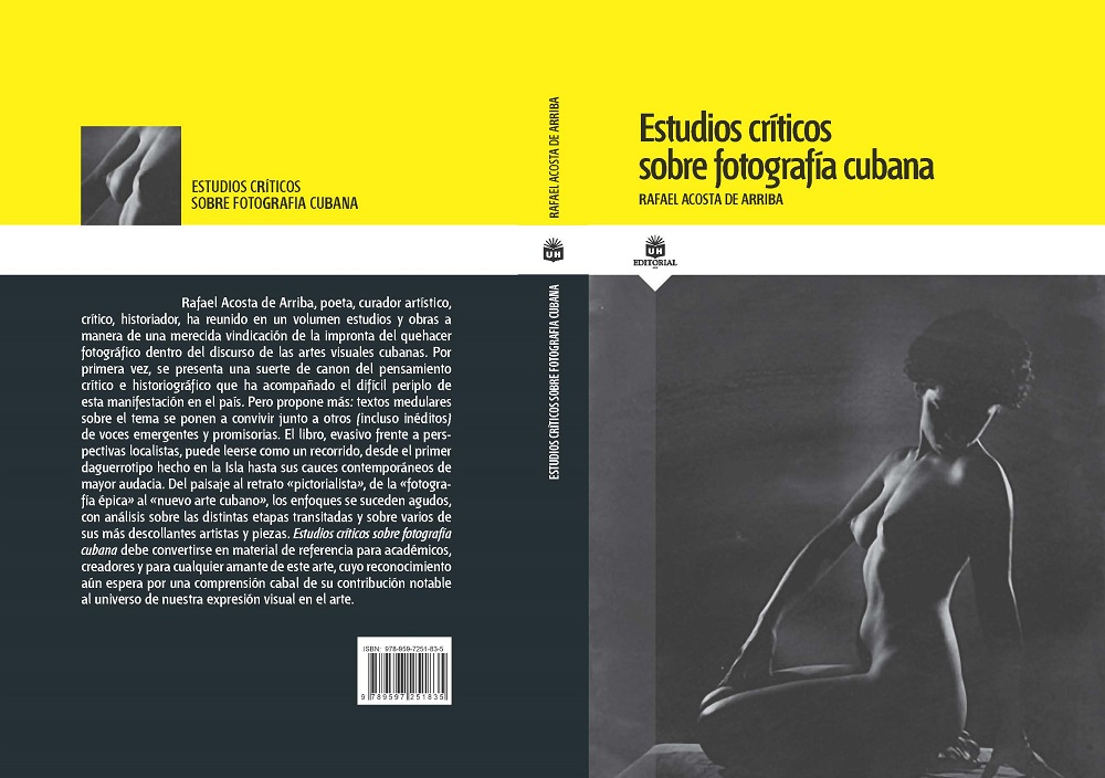 La editorial de la Universidad de La Habana, festejando su décimo aniversario, tuvo una visión esencial, de largo alcance, de editar un libro fundamental para la cultura cubana y, por extensión, latinoamericana; la aparición de Estudios críticos sobre fotografía cubana, cuyo coordinador es uno de los más talentosos y entusiastas historiadores y curadores de la fotografía cubana en el presente siglo, el Dr. Rafael Acosta de Arriba. Felizmente hace su aparición en nuestras librerías en el 180 aniversario del arribo de la fotografía a Cuba, conmemoración de particular relieve si tenemos en cuenta que nuestra Isla “…se convirtió en el segundo país del mundo y el primero en Hispanoamérica en inaugurar de manera oficial el primer estudio público o comercial de retratos al daguerrotipo”.[1] Es un orgullo para nuestra nación estar a la vanguardia de un invento que llegaría con el tiempo a revolucionar las artes visuales en el mundo. Acosta de Arriba reafirma la trascendencia de su llegada cuando señala: