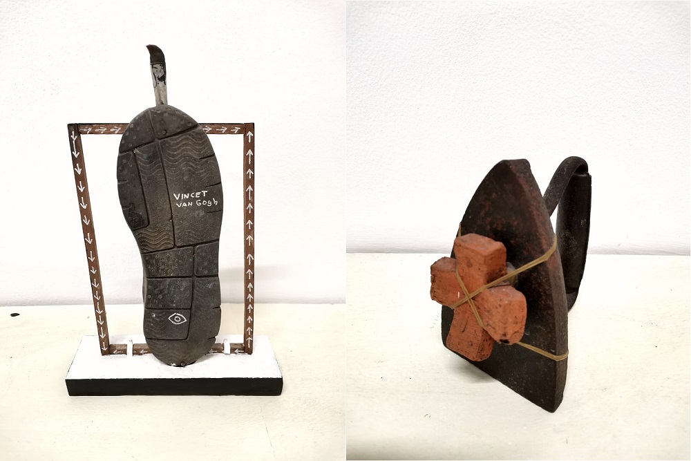 La ingeniosidad antes aludida hace gala en la última de las salas de la exhibición (advertencia: la expo continúa allá atrás) y parece que el mejor de los descubrimientos, o la mayor sorpresa, nos espera en esa última sala, con el conjunto de piezas escultóricas, u “objetos esculturados”, basados en el reciclaje, otra práctica ya inherente al cubano, así como la presencia del humor y la ironía, grupo de piezas ante las que solo podemos exclamar ¡Eureka!