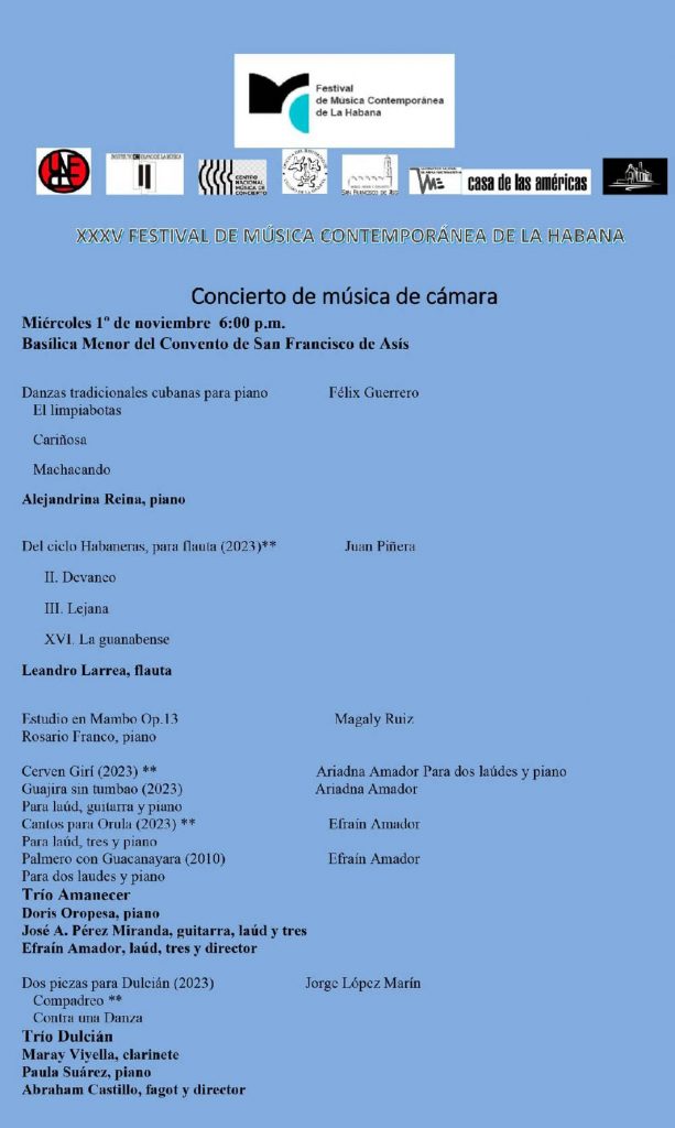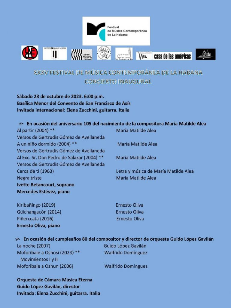 La edición 34 del Festival de Música Contemporánea de La Habana comienza el 28 de octubre con un concierto en la Basílica Menor del Convento de San Francisco de Asís, en el Casco Histórico de esta ciudad.