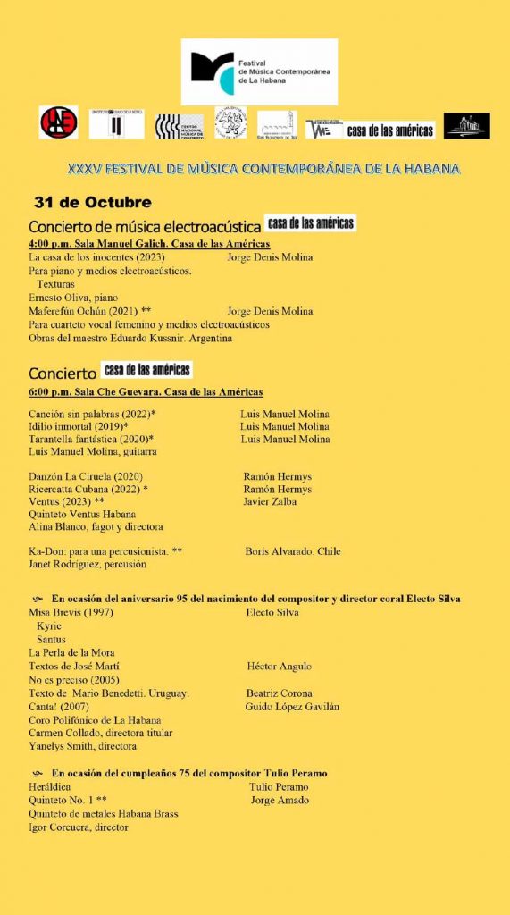 Convocado por la Asociación de Músicos de la Uneac, el Festival de Música Contemporánea de La Habana nació en 1984 como consecuencia del Festival de Música de los Países Socialistas y los Encuentros de Música Cubana.