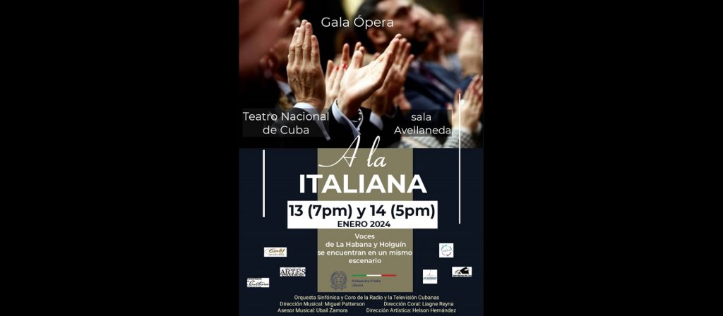 Un espacio con ópera, para celebrar el advenimiento del año 2024. La gala, titulada A la italiana, también cumple el propósito de festejar los aniversarios, de la emisora CMBF, Radio Musical Nacional y de la orquesta y el coro de la Radio y la Televisión Cubanas, en la que intervendrá un elenco de lujo integrado por voces líricas de Holguín y La Habana.