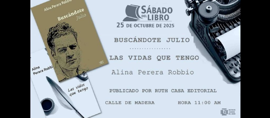 El tradicional espacio “Sábado del Libro”, que convoca el Instituto Cubano del Libro, presentará este 25 de octubre los títulos publicados por Ruth Casa Editorial: “Buscándote Julio” y “Las vidas que tengo”, de Alina Perera Robbio.