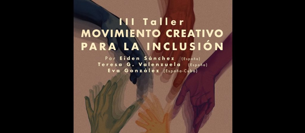Del 8 al 12 de septiembre próximos se realizará en el Centro Cultural Bertolt Brecht la Tercera Edición del Taller Movimiento Creativo para la INCLUSIÓN, organizado por IRREVERENCIA Producciones, con el acompañamiento del programa ACERCA de la Consejería Cultural de la Embajada de España en Cuba y el auspicio del Consejo Nacional de las Artes Escénicas y el Ministerio de Cultura de Cuba, con la participación de especialistas españoles: Teresa G. Valenzuela, Eiden Sánchez y Eva González (España – Cuba).