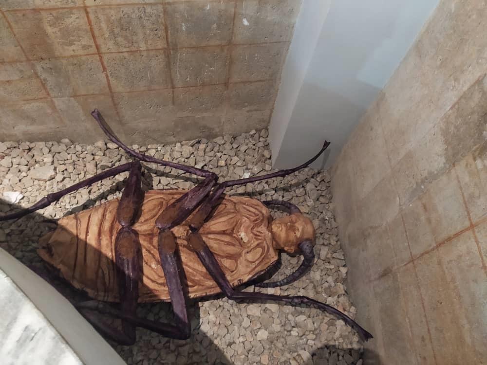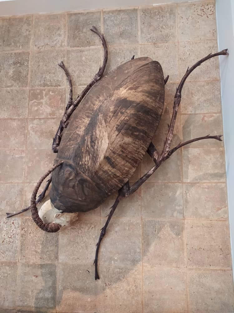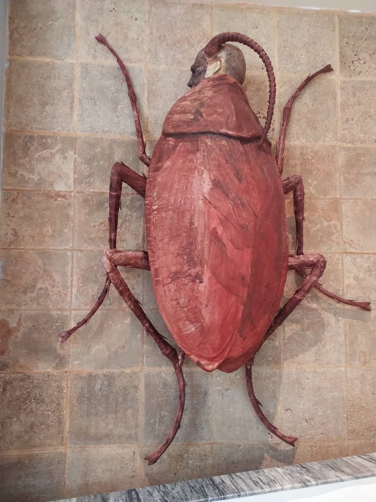 “En la pared izquierda de la rampa te encuentras con Sobreviviente, que es una pieza exhibida, en 2009, en la fachada del Museo. Es una cucaracha con cabeza humana como un homenaje a la Metamorfosis de Franz Kafka. De esa instalación, Fabelo decidió dejar en el Museo —de manera permanente— una sola cucaracha, pero ahora se sumaron ¡cuatro más! Es decir, ahora el Museo se enriquece con un total de ¡cinco cucarachas! que quedarán expuestas para siempre.