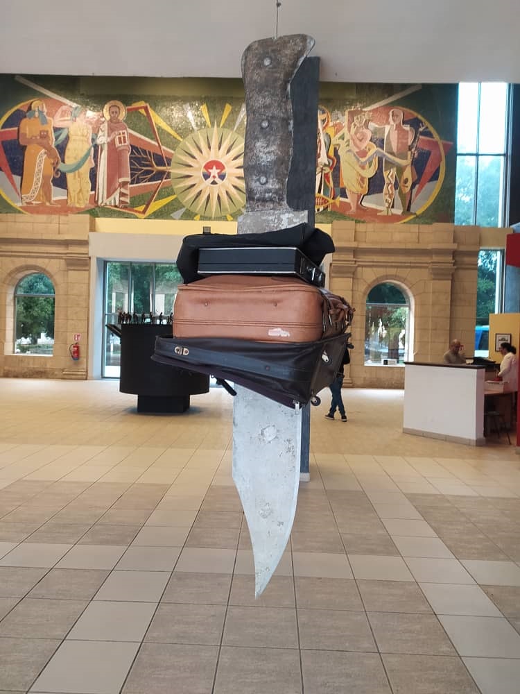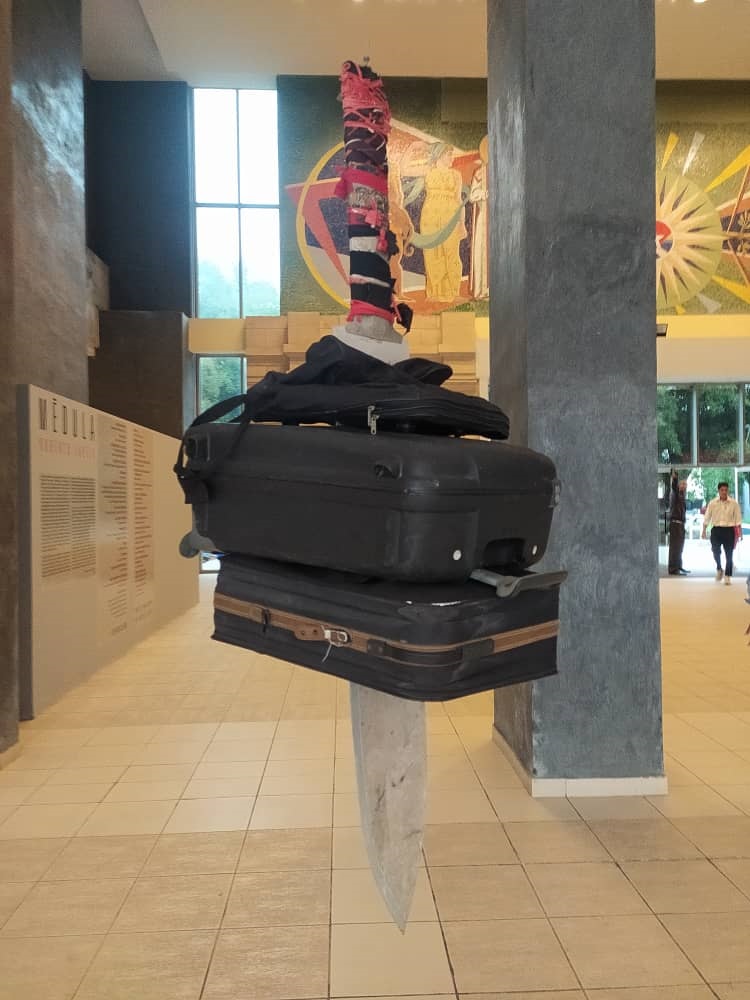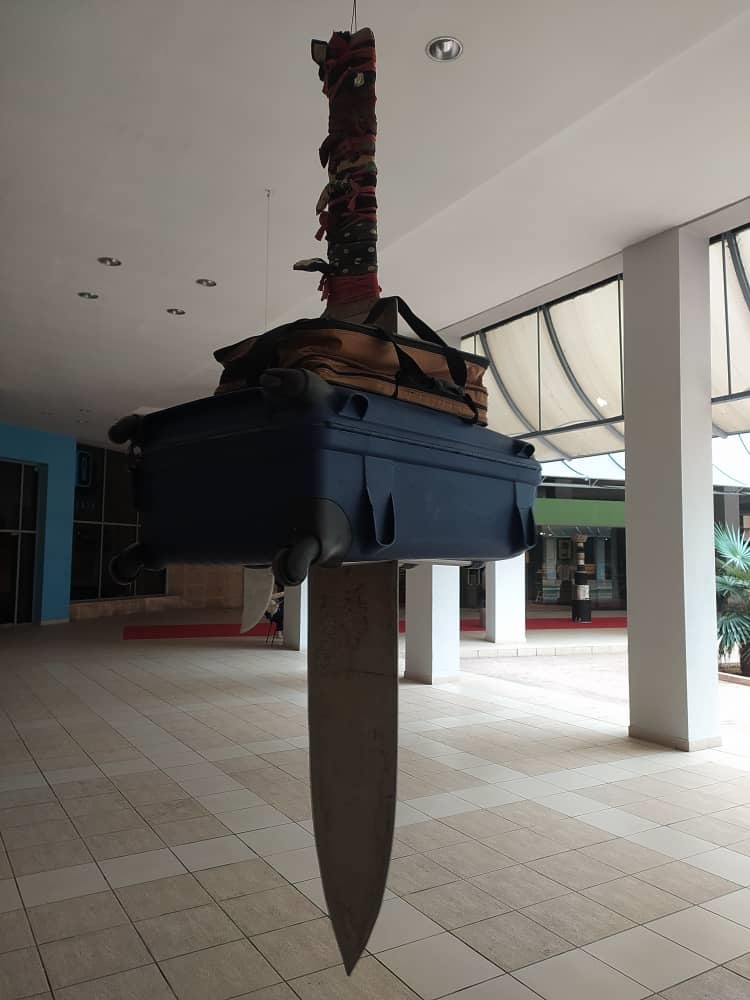 “Exacto y que también está colocada en el lobby del Edificio de Arte Cubano. Inicialmente había utilizado esa pieza en una exposición que curé —junto a la especialista Margarita Sánchez— cuando me desempeñaba como director del Centro de Arte Contemporáneo Wifredo Lam. Esa muestra la titulamos Polaridad Complementaria y fue la primera exposición que viajó a Estados Unidos luego de que fuera elegido como presidente Barak Obama. Nosotros no pudimos ir porque no nos otorgaron visa, pero las obras sí se exhibieron en Nueva Orleans y varios centros norteamericanos de arte. Funcionó muy bien. Era una sola obra en la que se mostraban maletas atravesadas.