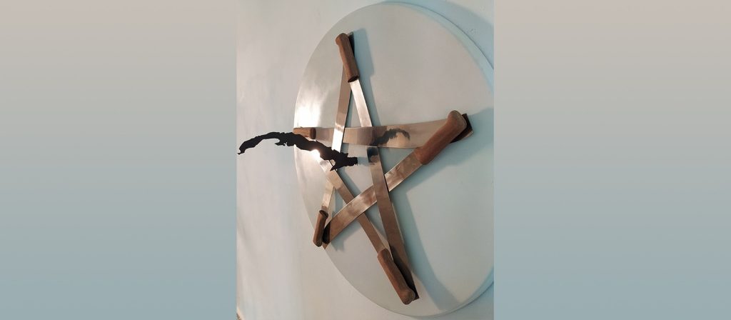 José Emilio Fuentes (Jeff). “Alcancía”, 2018. Acero inoxidable repujado. 94 x 85 x 2 cm.