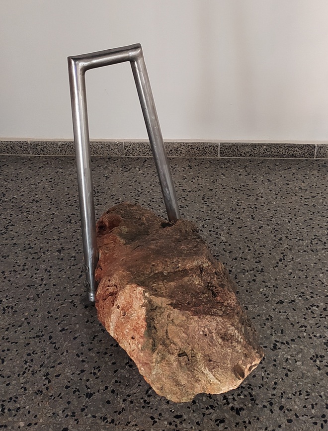 Alberto Domínguez. De la serie Funcionalmente, disfuncional, 2022. “Mueble 01”, 2022. Roca natural y hierro. 90 x 40 x 70 cm.