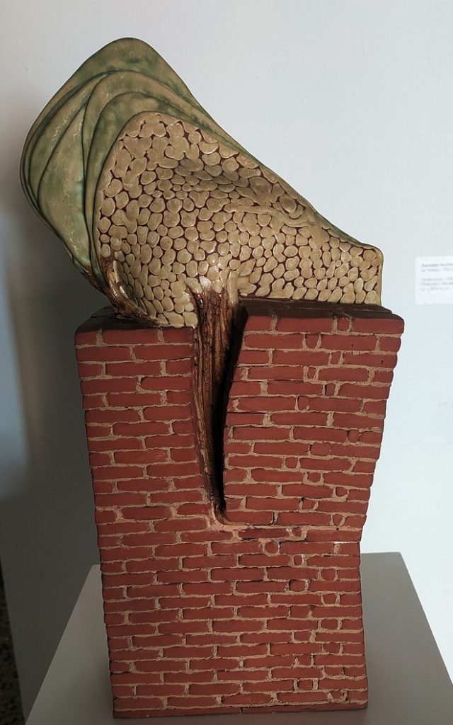 Fernando Velázquez Vigil. “Germinación”, 1987. Pasta roja y esmalte policromado. 45 x 25 x 30 cm.