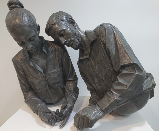 Desde que gestamos la muestra, ambas coincidimos en que el piso de arriba debíamos dedicárselo al Taller de Creación de José Villa Soberón. Todos los escultores que conforman la muestra son de altísimo valor artístico y creativo, pero en esta planta tenemos como la semilla del futuro. Aquí está el concepto más tradicional de lo que significa el maestro y sus discípulos, desde Rubens, Miguel Ángel, desde el Barroco al Renacimiento: todos los escultores responden a una escuela, talleres y ¡maestros! Y aquí mostramos una parte de nuestra escuela contemporánea, donde se están formando maravillosos escultores no solamente de factura sino de concepto. Son excelentes no solo como artistas, sino como pensadores, como intelectuales. A pesar de que son muy jóvenes tienen un gran bagaje y no abandonan la tradición que tiene que ver con el oficio. Esto es lo que consideramos más destacable por encima de cualquier cosa.