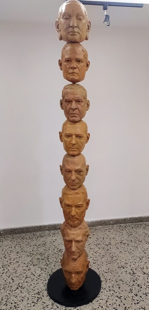 Marco L. Rey. De la serie Las partes y el todo: “Canon de ocho cabezas”, 2022. Arcilla cocida. 180 x 30 x 30 cm.
