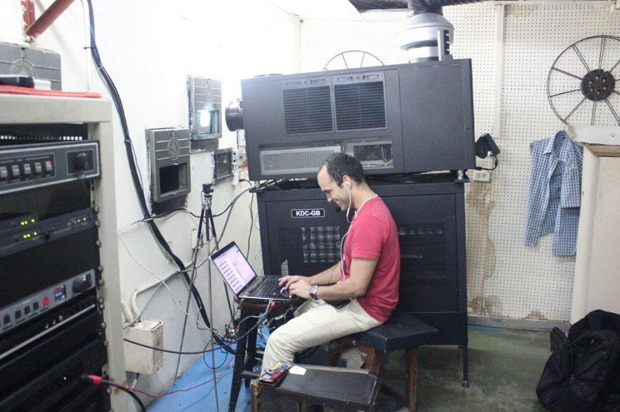 Esos fueron los integrantes del grupo durante un momento importante del Proyecto Delta, pero con el tiempo hablar de “los integrantes” del Proyecto Delta es complicado, por la dinámica de los espectáculos y del mismo proyecto. En el momento de las funciones hay dos personas que son las que el público ve directamente: David Darias y yo. David está en la cabina de proyección del cine, se graba con una webcam y se proyecta en la pantalla en vivo. Yo estoy en el escenario. Pero, además de nosotros dos, hay cerca de 10 personas haciendo que el espectáculo funcione. En un momento dado, esas éramos las personas que garantizábamos que los espectáculos funcionaran, y en casi todos los espectáculos estábamos todos allí.