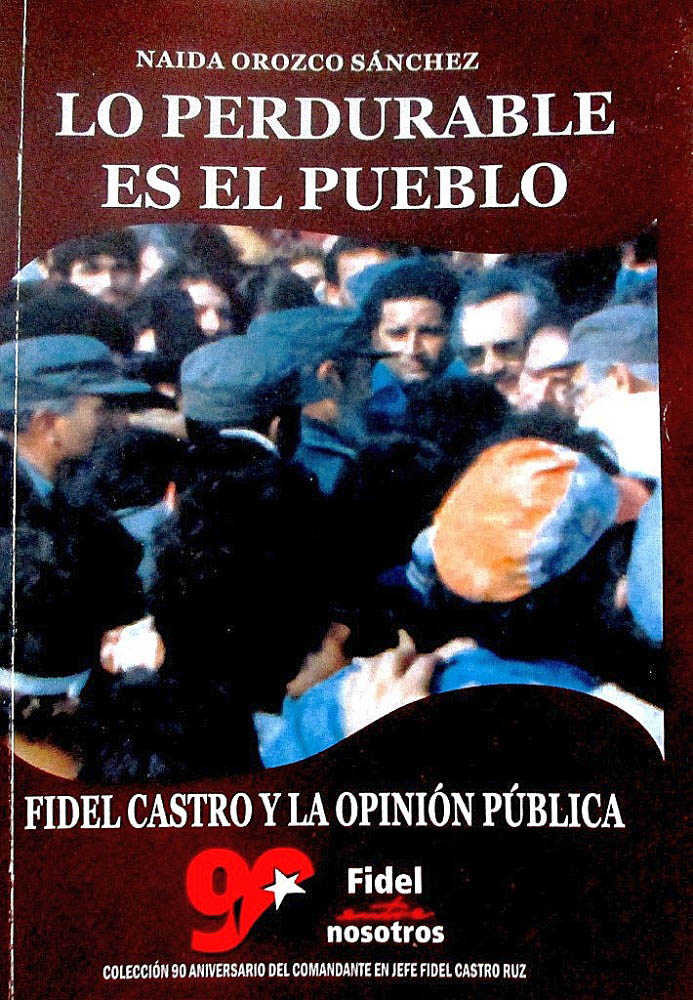 Primera selección temática —integrada por 359 asientos— con fragmentos de textos del Comandante en Jefe referidos a su elevado concepto de la opinión del pueblo. Licenciada en Ciencias Sociales e Investigadora Agregada, Naida Orozco Sánchez (1945) estuvo vinculada, por años, al Centro de Estudios Sociopolíticos y de Opinión (Cespo), adjunto al Comité Central del Partido Comunista de Cuba, donde preparó el boletín En consulta con el pueblo. En el prólogo a este volumen, el investigador Darío L. Machado Rodríguez escribe que “con este libro la autora pone en nuestras manos una rica información de partida, ella ha dado el primer paso hacia una línea de investigación sociopolítica acerca de la relación entre la actividad revolucionaria, el pensamiento y la acción política de Fidel y los procesos de conformación de la opinión pública en Cuba”.