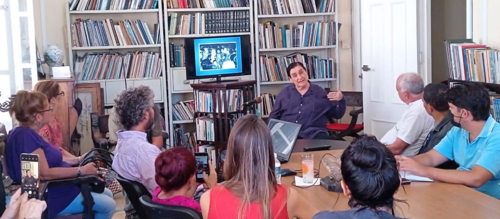 Antes de la charla, Simón presentó un material audiovisual donde se mostraba el testimonio de Ángela Grau y de Alicia como parte de la declaración que ofreciera el Ballet Nacional de Cuba en 1959 en respaldo al proceso revolucionario. A juicio de Pedro, ese momento definió el desarrollo de esa institución hasta la actualidad.