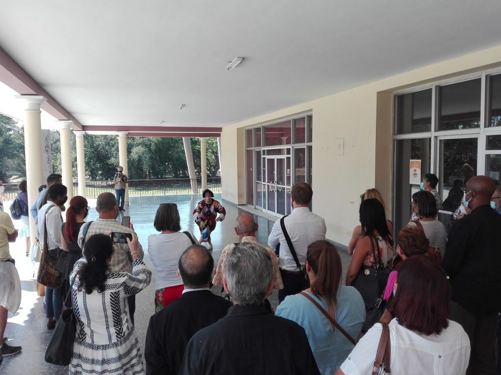 De la mano de estudiantes, los participantes visitaron la Facultad de Arte Teatral, espacio que constituye un verdadero referente en la historia de las artes escénicas en Cuba, y cuya reparación y puesta en valor constituyen una prioridad para la propia Universidad y otras instituciones. En sus pasillos se guardan las historias de muchos de nuestros creadores de las artes escénicas.