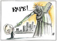 Free Assange es el título de una muestra colectiva de dibujos de humor que seguramente no necesite muchas explicaciones. La conforman treinta y ocho obras publicadas sobre el tema, que han sido reproducidas en diferentes soportes y han salido a la luz en diversos momentos del proceso contra Julian Assange.
