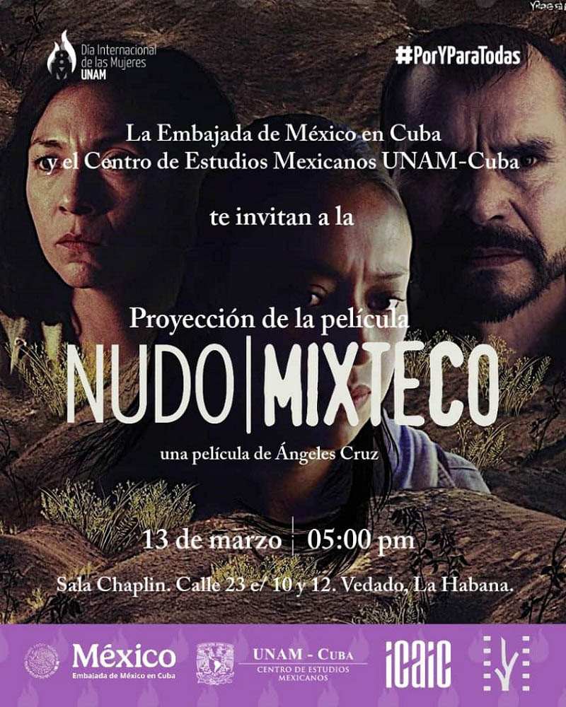 En el marco de la Jornada por el Día Internacional de la Mujer, la directora, guionista, actriz y productora acompaña la presentación del largometraje Nudo Mixteco, ópera prima reconocida en varios festivales internacionales de cine.