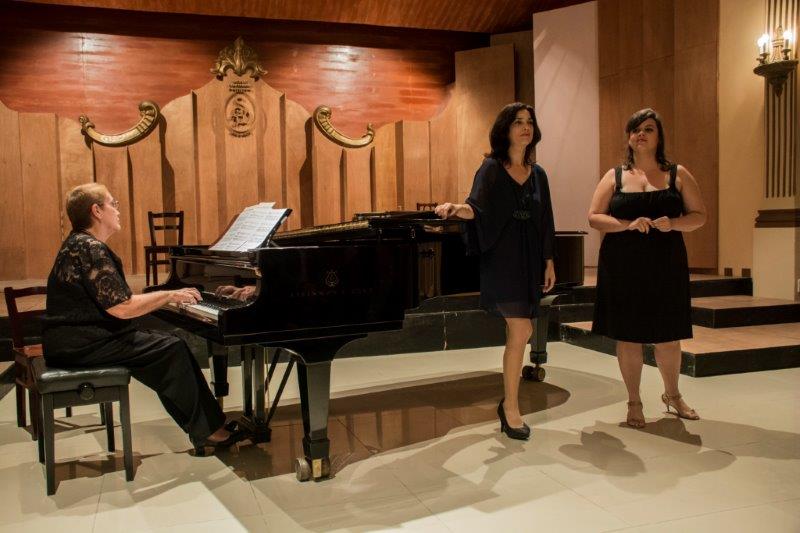 Hilda Elvira Santiago al piano con las sopranos Bárbara Llanes y Lucelsy Fernández