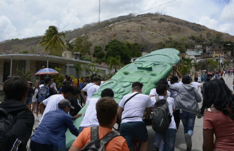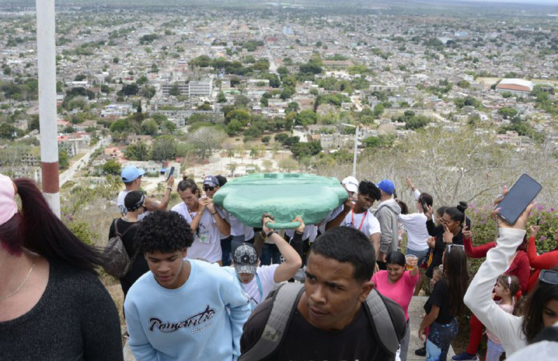 La ceremonia inaugural continuó con la tradicional subida a la Loma de la Cruz, encabezada por el símbolo de la ciudad: el Hacha de Holguín, réplica construida en papel maché y alambrón, representativo de una figura antropomorfa masculina con una diadema en la parte superior y los brazos colocados sobre el pecho; y un sello impreso que la distingue dentro de las de su tipo.