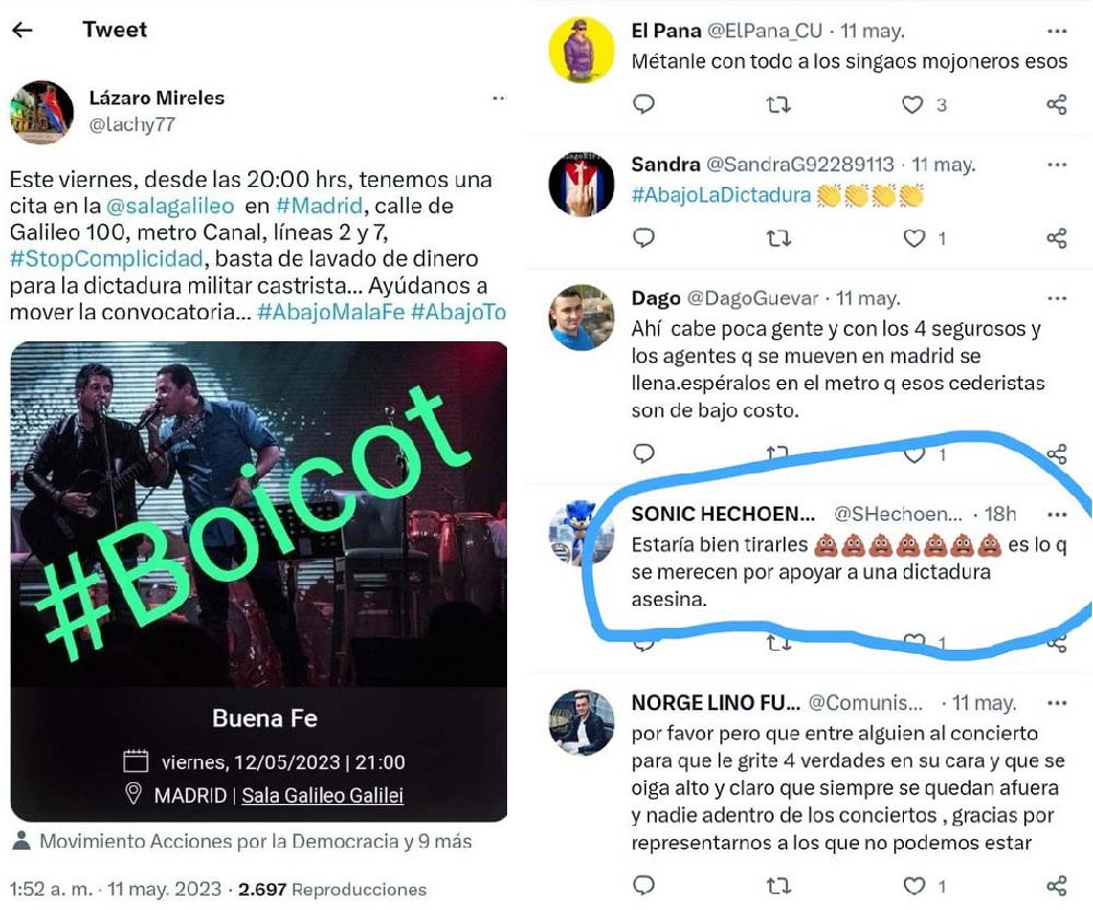 El pasado 12 de mayo, la agrupación cubana realizó un concierto en la sala Galileo Galilei de Madrid, con una gran acogida del público presente. A decir de Fajardo, “en ese mismo escenario se suscitó una lamentable provocación, lo que tuvo un rechazo del público asistente. Esta provocación estaba concebida de antemano, así lo demostraron en las redes sociales los propios odiadores”.