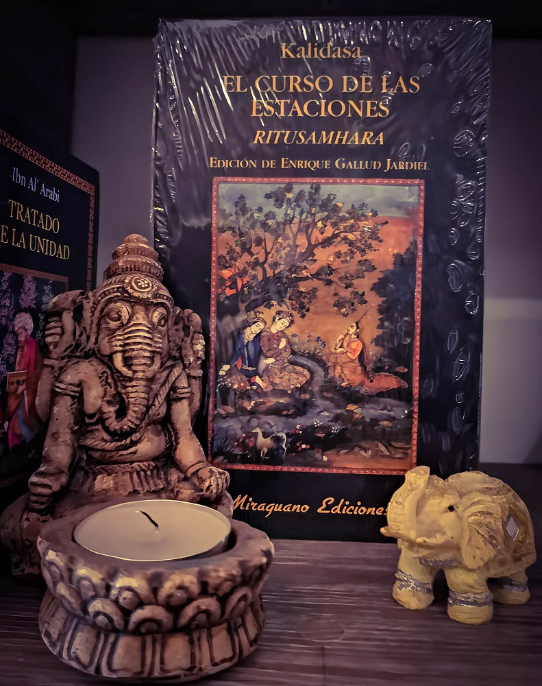 El más influyente de estos poetas-dramaturgos hindúes fue Kālidāsa (375-414), autor colmado de leyendas; a él se le han atribuido numerosas obras, pero con certeza es el creador de Sakuntalá, admirada posteriormente por el romanticismo europeo. Cuenta la historia de amor entre la hija de Menakā ─una apsará que bajo la interpretación europea sería una ninfa celestial, aunque más bien se trate de una representación de la naturaleza─ y un asceta, y el rey Dushyanta; para ello desarrolla equívocos y magia con exquisito refinamiento, elegancia, sobriedad, evocaciones de encantamiento, combinaciones de diálogo en prosa simple y sublime, con estrofas poéticas muy elaboradas, descriptivas y destinadas al canto. De la producción lírica de Kālidāsa se recuerda, entre otras, Ritusamhara o Descripción de las estaciones, obra maestra clásica de la poesía descriptiva, que alude al vínculo entre el amor y el erotismo con el ciclo estacional del año en la India, con extraordinario sentido plástico. Estas creaciones dejaron establecido un clásico ideal de belleza en la concepción de los seres humanos como parte de la naturaleza.