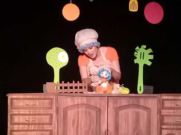 En algún momento leí, y cito de la revista Correo de la Unesco (Nos. 3-4 / 1955. Año VIII), que los títeres “superan a veces a los actores de carne y hueso. Y es que los muñecos, aunque rígidos y en actitud de contemplarnos fijamente con su expresión invariable, pueden representar cualquier papel, ser realistas, cómicos, trágicos, fantásticos o satíricos y mostrarnos la infinita complejidad de los sentimientos humanos”. Esta es, sin duda, una potencialidad del teatro de figuras que en el montaje de La cocinerita adorada… se verifica, aunque debo decir que no llega a superar a la actriz de “carne y hueso”, sino que se crea una simbiosis efectiva a la hora de la representación.