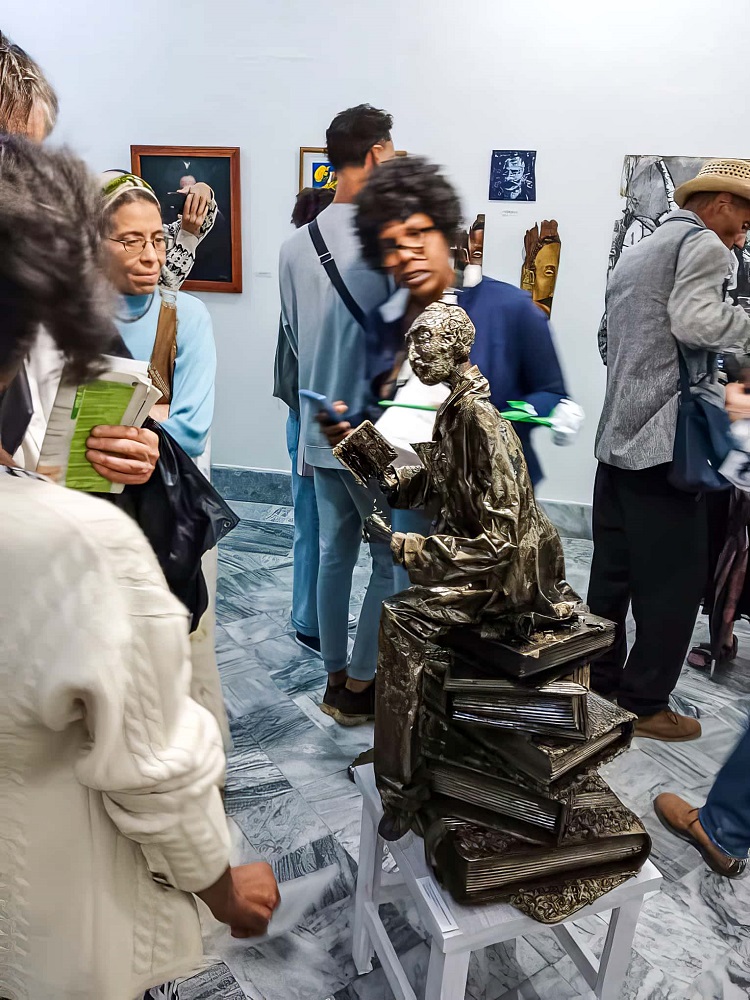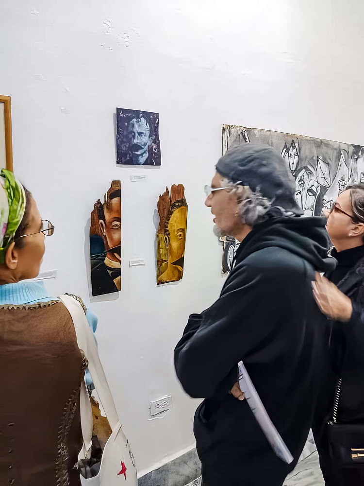 La misma, inaugurada a las 5:30 pm de este 28 de enero —uno de los más fríos de nuestra noble temporada invernal—, no le faltó el calor que siempre une a los cubanos y cubanas cuando de honrar a José Martí se trata. La curaduría a cargo de Evelio Pérez Morejón, ha hecho de esta fecha una cita obligada para el arte cubano contemporáneo, así como el marco propicio para el necesario reencuentro y abrazo de aquellos que han hecho de Martí…, y Martí con ellos —quién sino— la semilla óptima para el permanente florecimiento de su arte.
