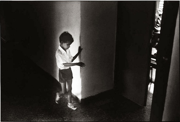 Abascal no titula sus fotos: les pone fecha y lugar, como quien fija las coordenadas de un suceso, o mejor aún, de sí mismo. Más que documentar, se autorretrata. Quizás por eso uno siente que estas medias tintas, estas sombras y estas luces lo habitaban a él cuando entró en aquella escuela. Cada foto suya es un viaje hacia sí mismo, pretextando una realidad que lo desborda.