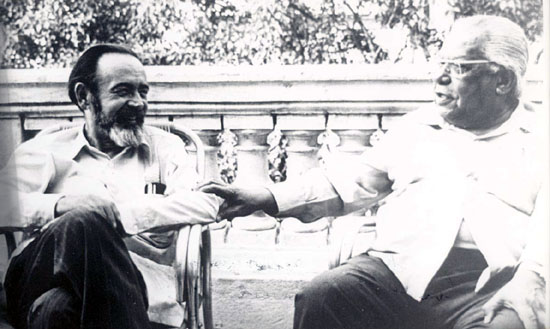Nicolás Guillén con Eliseo Diego en la UNEAC. Foto: Internet