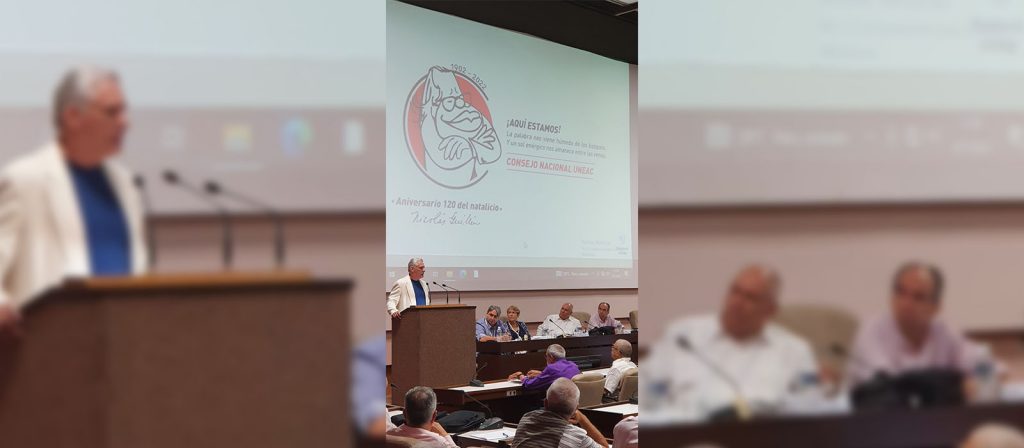 Reconocemos, además, la favorable campaña de comunicación, impulsada desde la Uneac para este Consejo, que tuvo como centro la obra y figura de Nicolás Guillén, Poeta Nacional, que debiera latir siempre en nosotros. Sus versos siguen muy vivos, como deberá estar, siempre palpitante, esta organización, de la cual fue fundador y primer presidente.