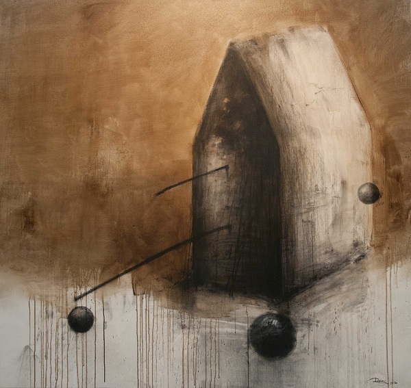 Estamos ante un conjunto de paisajes de los que se busca escapar para —automática y paradójicamente— regresar a ellos. Las edificaciones representadas en gran parte de las piezas nos resultarán muy conocidas: viejos preuniversitarios en desuso, la habanera Plaza de la Revolución y sus inmuebles más representativos… En otras, la presencia de lo arquitectónico se fundamenta en la sencilla referencia, en el discreto simbolismo —tal y como ocurre en los trabajos sobre lienzo y papel y en algunas instalaciones—. Estas últimas piezas gravitan en el limbo de lo posible y lo filosófico; constituyen vehículos atemporales utilizados por el artista para recrear su obsesión, analizarla desde múltiples perspectivas, detenerse en detalles nimios, maniobrar con técnicas y soportes…