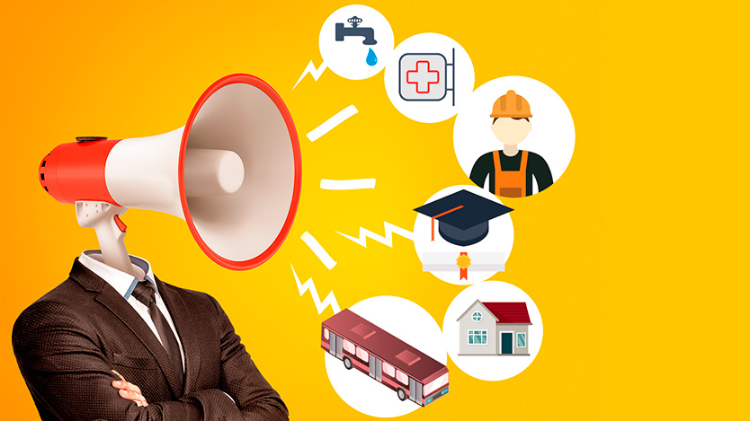 - Las instituciones y espacios no estatales vinculados al accionar de las organizaciones de masas y sociales, las llamadas Organizaciones no Gubernamentales, cooperativas y asociaciones con perfiles profesionales y de acción no estatales, no solo potencialmente beneficiarios de las políticas públicas desarrolladas por los gobiernos, sino parte activa en todos los procesos de toma de decisiones. Son los que expresan las más variadas demandas de la llamada sociedad civil, asociadas a la necesidad de diseñar, coordinar y ejecutar políticas concretas para enfrentar problemas de pobreza, pandemias, hambre, desempleo, salario, migración, inflación, desastres naturales, criminalidad, narcotráfico, crisis energética, situaciones de vulnerabilidad, de violencia en general o de discriminación por razones de raza, género, sexual o religiosas y, entre otros asuntos de interés, vacíos culturales.
