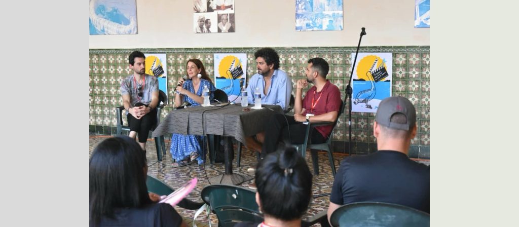 El conversatorio, moderado por el productor cinematográfico cubano Inti Herrera, tuvo como protagonistas a los cineastas Patricia Ramos y Alan González, de Cuba; a Federico Jacobi, de Argentina; y al chileno-canadiense Cristhian de la Cortina, con cuyo filme Sin papeles iniciaron las proyecciones en el cine Jibá de esta XVIII edición del Festival.