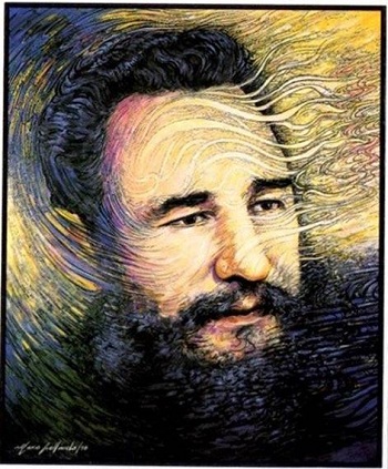Siempre estoy de una manera u otra en contacto con Cuba. Mis pinturas se encuentran colocadas de forma permanente en el salón Granma de la Embajada aquí en México a partir de la exposición “40 Aniversario del Granma”, de 1996. Es un tríptico, acrílico sobre lienzo sujeto a bastidores de madera donde retrato a Fidel, a Martí y dibujo al yate Granma. Las tres secciones unidas como un solo cuadro miden en total 1.80 m de alto por 5.50 m de ancho.