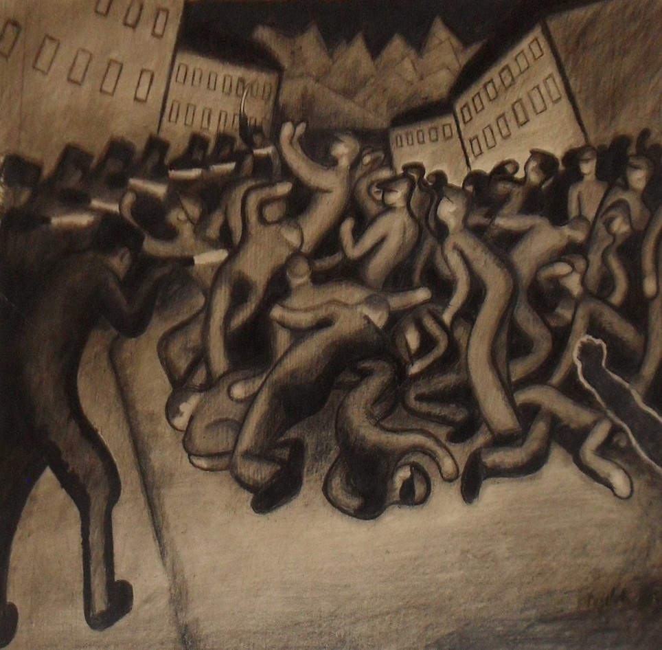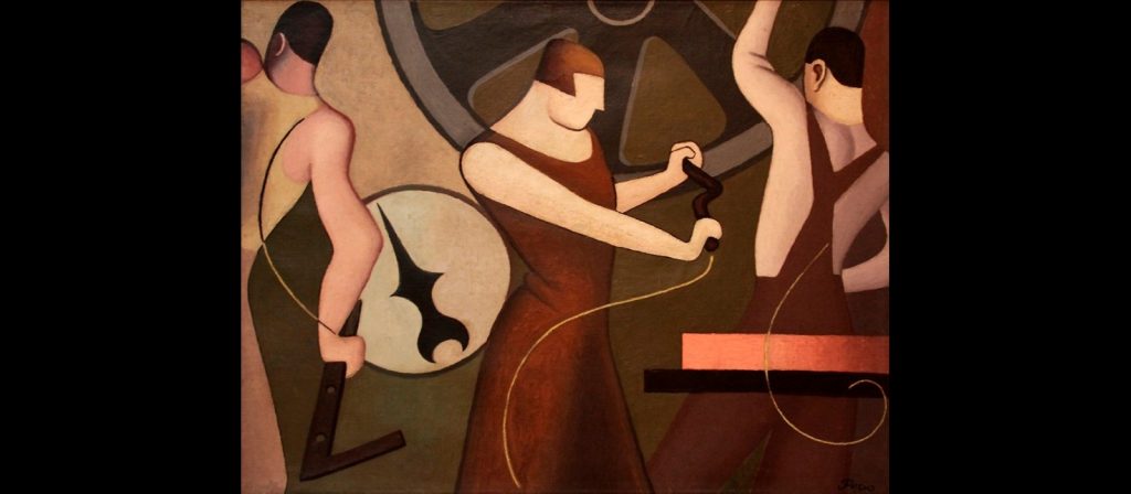 Esta pintura figurativa es la que atrapa la dinámica de la época que le tocó vivir; fue un período complejo, y él se dedica a señalar las inequidades y la explotación a que era sometida la clase obrera a través de la máquina. Sus severas reflexiones con respecto a la pintura que él realiza coinciden en época con la película Tiempos modernos, de Charles Chaplin, quien, desde el humor, critica al sistema capitalista en que la máquina explota y cosifica al hombre.
