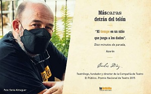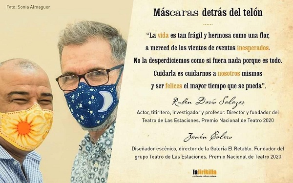“MásCaras detrás del telón” surge a partir de una idea de Sonia Almaguer Darna, quien aportó imágenes y testimonios de artistas cubanos en tiempos de aislamiento por causa de la pandemia de COVID-19 que azota al planeta. Es este un acercamiento, desde el lente y la palabra, a quienes aún en estas adversas circunstancias, no han renunciado a crear, vivir y soñar.