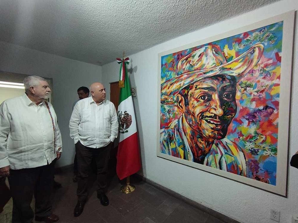 Inaugura Alpidio Alonso Grau, ministro de Cultura, el Centro Cultural México – Cuba “Benny Moré” en Ciudad México. Develó en la galería de arte del mismo la obra del pintor cubano Kamyl Bullaudy inspirada en un retrato de El Bárbaro del Ritmo.