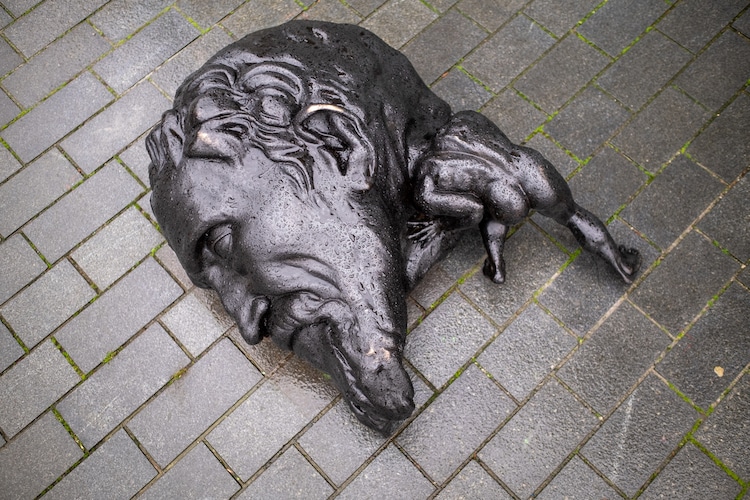 Hanna, la alumna de Heidegger, quiso desnudar la banalidad, darle nombre, denunciarla. Sin embargo, el reinado de lo inauténtico es hoy un hecho. Las cabezas de quienes moran en los espacios huecos de la posmodernidad tienden a crecer, como testas llenas de ideas superfluas, hacia la hipertrofia. En este lado, el del no pensar, pareciera que la gente es feliz, sin embargo, si se pone atención, se verá que la cara de la cabeza gigantesca concebida por Lerooy está como anonadada, tonta, un hilillo de baba le corre por los labios y cae en señal de chochez. Quien no comprenda el tipo de muerte terrible que se deriva de allí, quizás se dé de bruces bien pronto con su propio deceso. A fin de cuentas el fascismo, tal y como lo retrata Hanna Arendt, era capaz de convertir en monstruos a personas mediocres y sin maldad intrínseca.