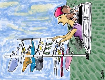 Observar las tendederas en estos días, parece algo de la revista Punch. Si antes mostraban las conocidas sábanas blancas, hoy pueblan los cordeles, sandalias, chancletas y tenis ahorcados con palitos, nasobucos de diferentes colores, tallas y modelos (los hay de andar por casa, de salir a la farmacia, existen combinaciones infinitas), además de jabas, carteras, monederos, todo lavado con fruición. He visto periódicos puestos al sol, recibos del gas, cuentas de la luz, nylon, caretas de soldadores, gorras: un conglomerado de adminículos que nunca antes conocieron la esencia de una lavandería, ahora son expuestos en la tendedera, antes de ser usados, leídos o analizados. Como si el camarada Sol fuera una bola clorada, mágica, todopoderosa. Es cuestión de fe.