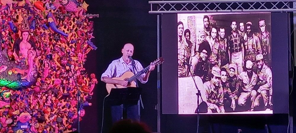 Acompañados por los acordes de la guitarra, interpretaron canciones icónicas de la Nueva Trova como “No ha sido fácil” y “El primer amor”, de Pablo Milanés; “Testamento” y “Mariko-San”, de Silvio Rodríguez; “Es más, te perdono” y “Son oculto”, de Noel Nicola; “Lo feo”, de Teresita Fernández, y “Créeme” de Vicente Feliú. Las voces del público entonaban los coros de esas canciones que son parte de la banda sonora de la Revolución Cubana.