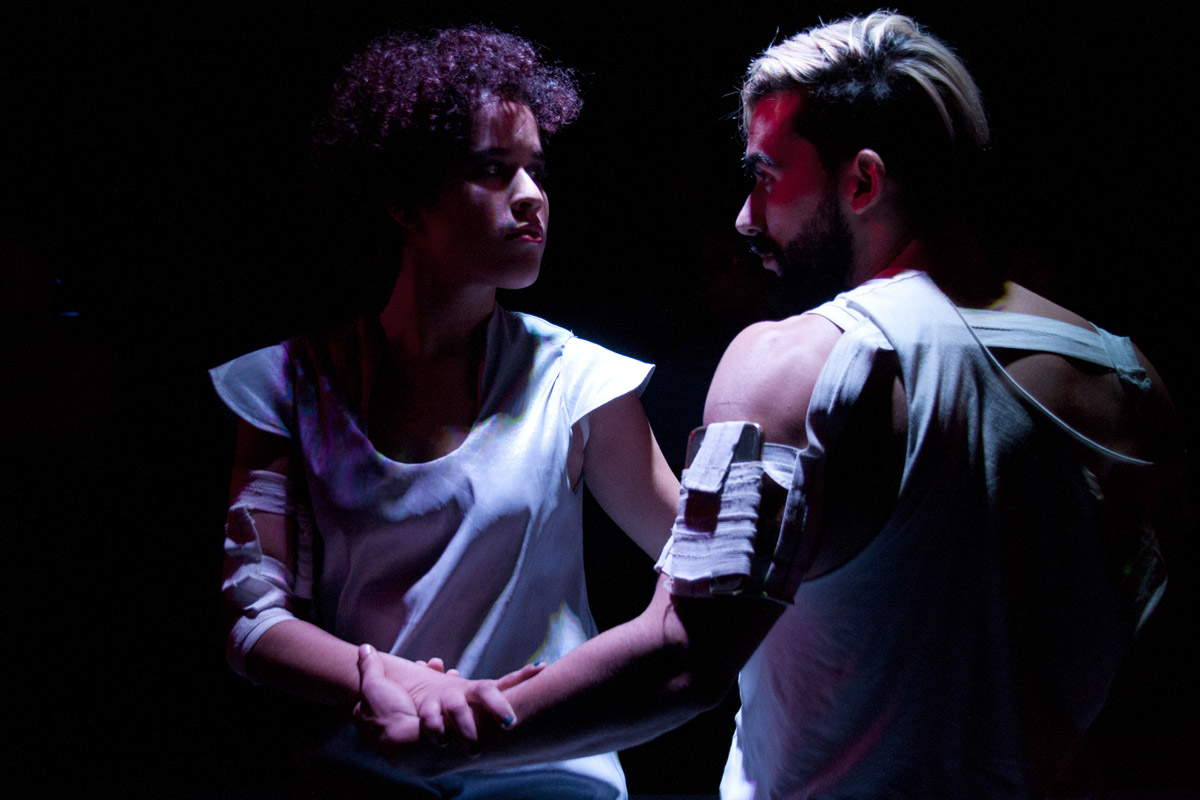 ¿De qué vale esa bibliografía inscrita en nuestro currículo? Sí, han visto a Fellini; a Fernando Pérez; a un Beckett de la mano de Carlos Celdrán; a La cándida Eréndira de Teatro Buendía; a Incendios, por el propio Ludi Teatro, y hasta un Rogelio Orizondo. Sí, han visto El imperio de los sentidos, La naranja mecánica. ¿Y? ¿Ha servido de algo? ¿Han podido cambiar su destino? ¿Han podido siquiera saber en qué tiempo viven? ¿Han notado el transcurrir de ese tiempo? ¿De qué sirve esa experiencia del conocimiento si hay ciertas cosas no resueltas que son más terrenales del aquí y del ahora? Una vuelta de página, un borrón y cuenta nueva o, más fácilmente, reconstruir o reinventar una historia, es una buena y rápida solución para estos muchachos divertidos que bien pudieran ser actores de un grupo de teatro que monta a su vez su propia historia. Actores que se mueven en la farándula de celebrities, en la nocturnidad de una bohemia cara donde es igualmente fácil tomarse una cerveza o una pastilla de Éxtasis.