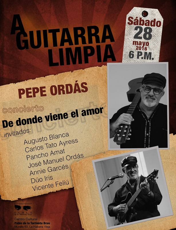 Como parte de esa fiesta de todos llega Pepe Ordás con su concierto De donde viene el amor, a este espacio A guitarra limpia, donde se han realizado más de 130 conciertos de trovadores y trovadoras de todas las generaciones y las tendencias de la nueva trova cubana. De esas presentaciones han quedado útiles huellas discográficas, digitales y audiovisuales, que están a disposición permanente en los sitios web del Centro Pablo y en sus propias instalaciones de la calle Muralla No. 63, aquí en el Centro Histórico de la capital cubana.