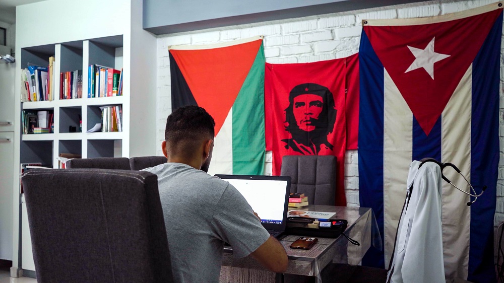En la pasada edición del Festival Internacional de Cine de Gibara, realizada en febrero, se proyectó el documental La raíz del olivo, dirigido por Sergio M. Eguino Viera. La sinopsis de material de 58 minutos, producido por Cuba, Argentina, Bolivia y Líbano, resume lo siguiente: “Cinco palestinos que viven lejos de su patria narran sus experiencias frente al recrudecimiento del genocidio y la ocupación israelí, que lleva más de 76 años. Desde la distancia, Watan, Omaima, Murid, Baylasan y Bassel comparten historias de lucha, pérdidas y esperanzas. A través de sus cartas, su cotidianidad y sus recuerdos, entrelazados con la impotencia de estar lejos, expresan su fe inquebrantable en un futuro libre para Palestina, siempre con el constante apoyo de Cuba, el país que los acoge”. Pero la sinopsis es apenas una ventana abierta a un documental cuyo objetivo es —comenta Sergio— “humanizar lo que está sucediendo en Palestina y llevar esperanza al público”.
