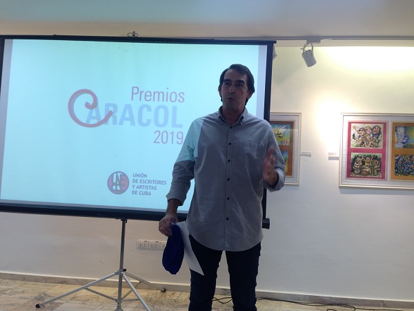 La sala Villena de la Unión Nacional de Escritores y Artistas de Cuba (UNEAC) acogió este viernes la entrega de los Premios Caracol 2019. Estuvieron presentes Pedro de la Hoz, Vicepresidente de la UNEAC; Lourdes de los Santos, Presidenta de la Asociación de Cine, Radio y Televisión de la UNEAC; miembros del jurado y los profesionales premiados.