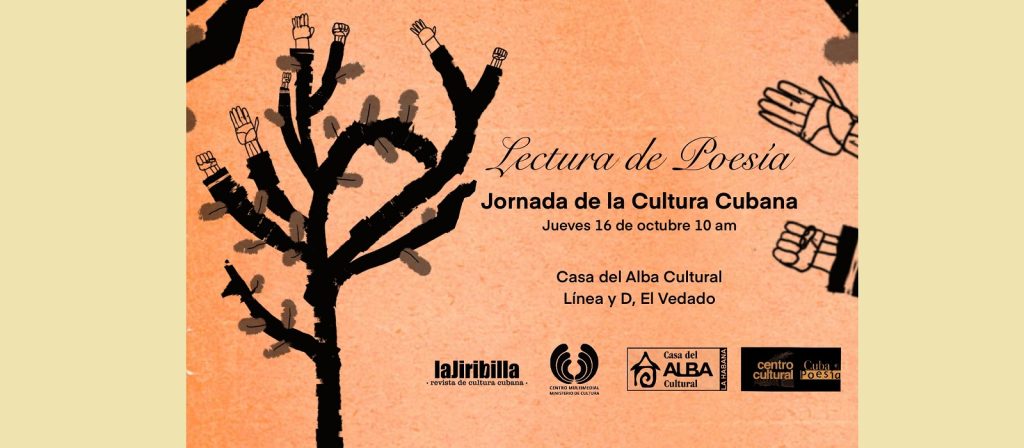 La Jiribilla, revista de cultura cubana, y el Centro Cultural CubaPoesía invitan a una Lectura de Poesía en ocasión de la Jornada de la Cultura Cubana. Autores de diversas generaciones y poéticas confluirán en esta celebración que tendrá a la Isla, su historia y su gente como una cartografía a explorar y cantar, a descubrir y soñar.